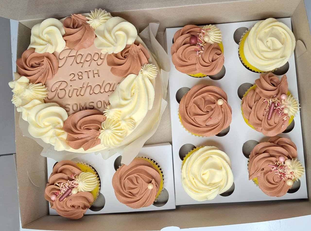1 cake and cupcakes