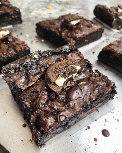 Oreo Fudgetastic Brownie – The fudgiest, most chocolatey brownie we have on offer. Made with melted chocolate and crushed oreos throughout the batter, topped with more Oreo, perfect to satisfy any chocolate cravings.